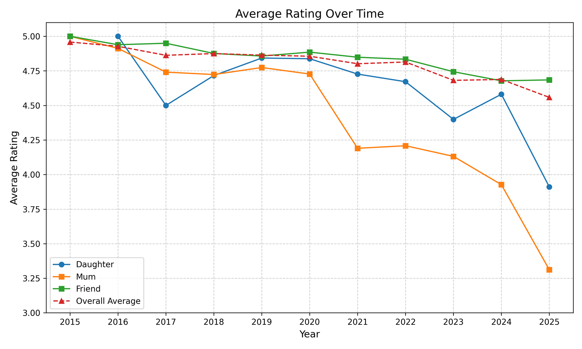 The average rating from reviewers who mention sending flowers to their daughter has also declined although it is not as pronounced as with gifting to mum. By comparison, reviewers who sent flowers to friends mirror your overall rating.
