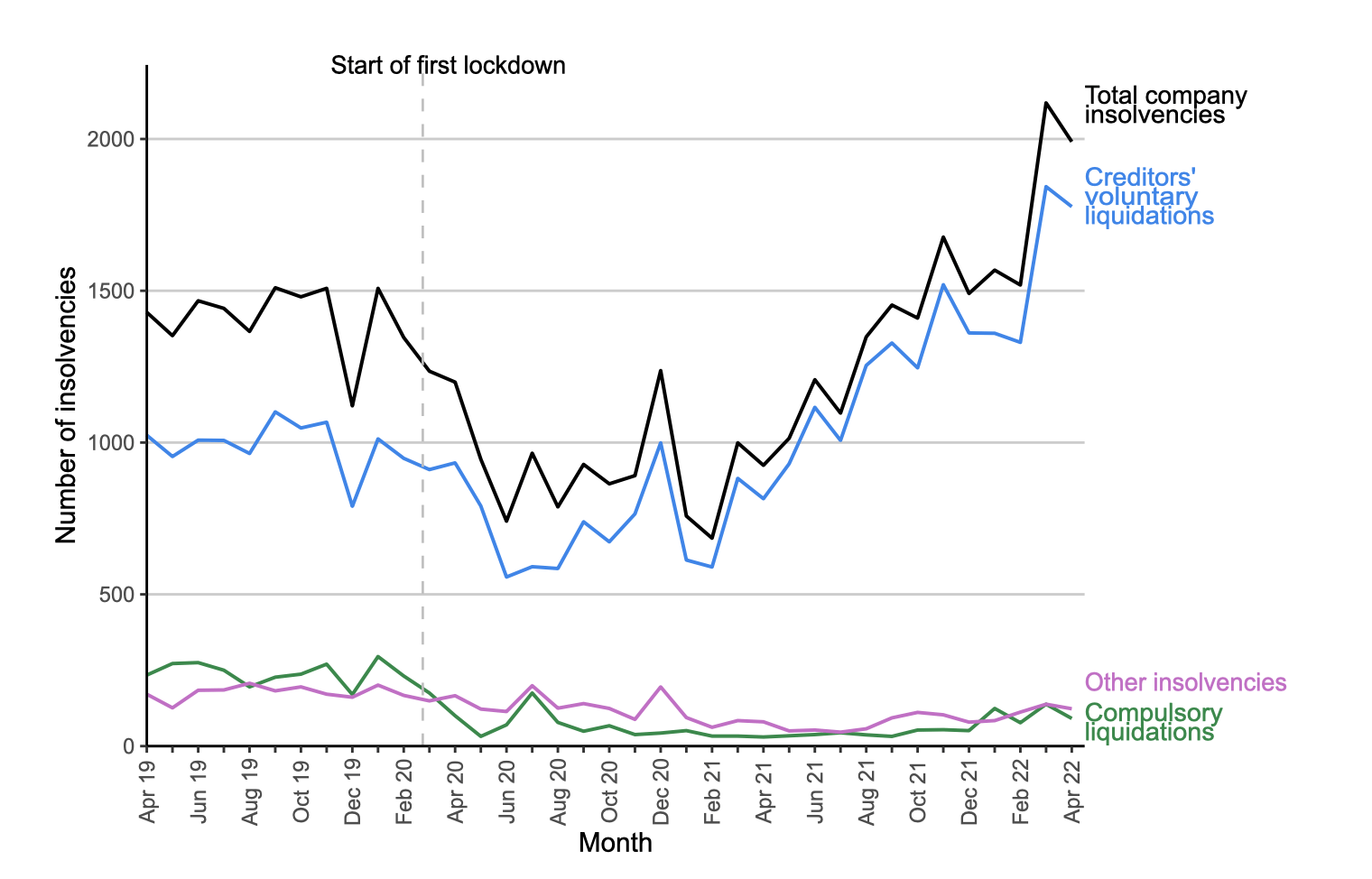 Rising inflation and weakening consumer confidence has seen the demand for some consumer goods and services fall, leaving businesses in that sector exposed. Staff shortages will also have had an impact meaning that many businesses have struggled to produce things they can sell or provide revenue earning services. Finally, businesses that exported to the EU may have been tipped over the edge due to the post Brexit increase in regulations.