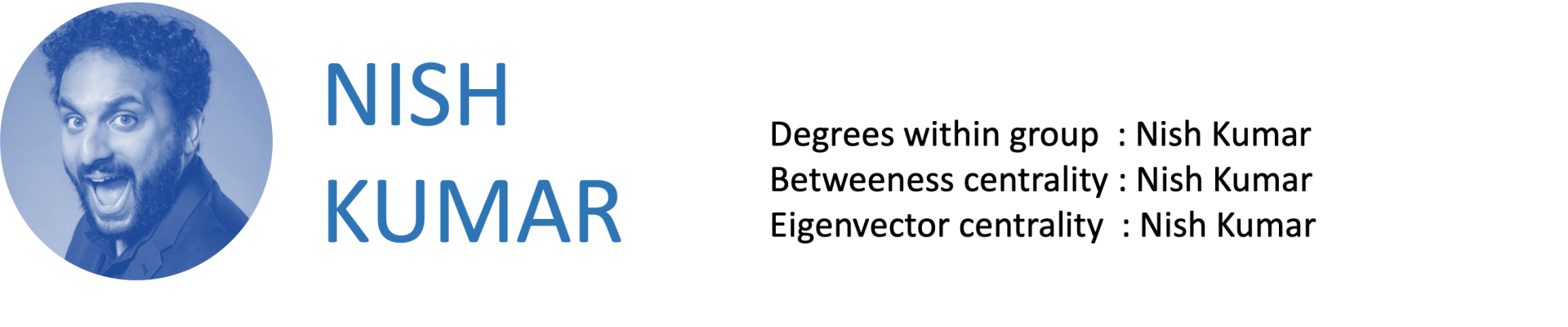In this article we have applied network analysis to comedians but it can be applied to marketing and business situations to provide insight.