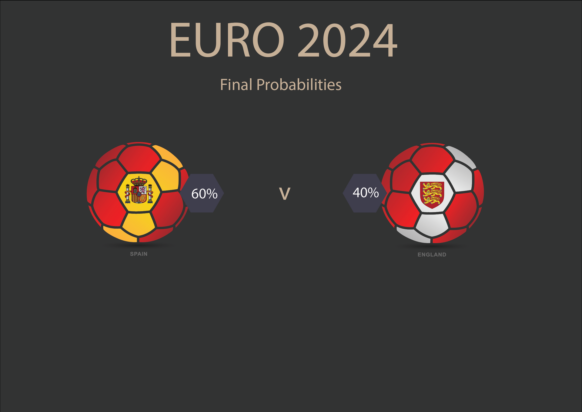 Our model gives Spain a 60% probability of winning with England on 40%.