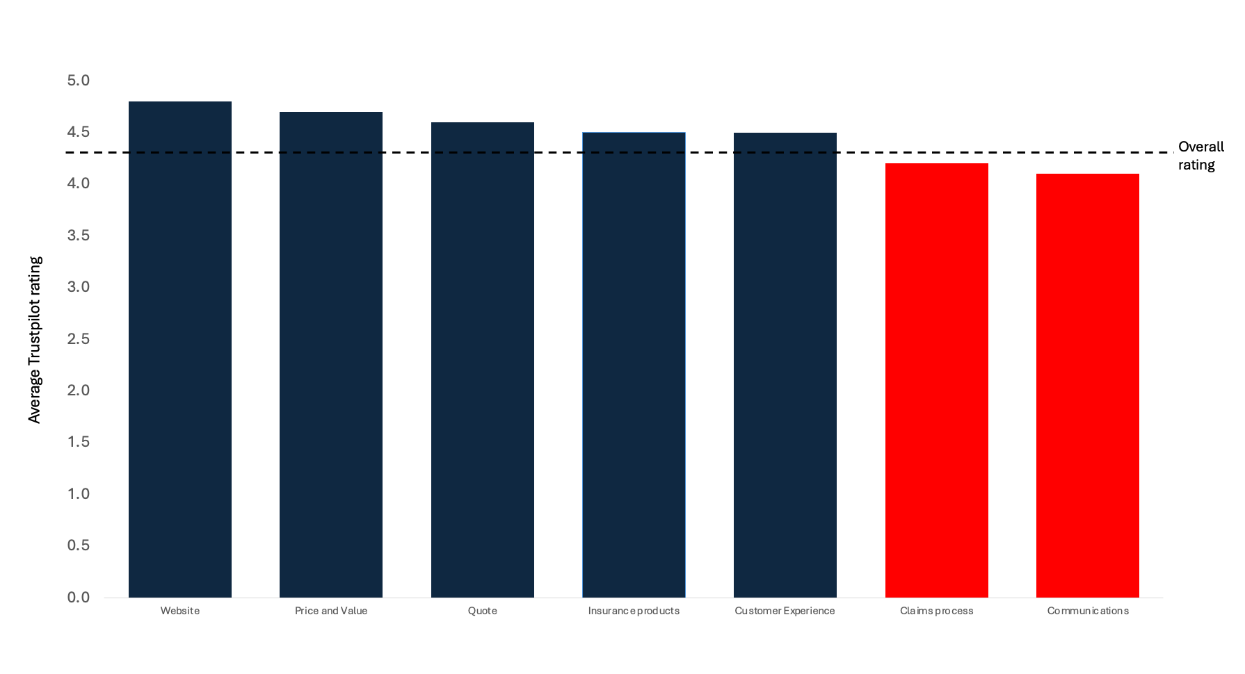 The claims process emerges as a clear area for improvement, with ratings below the overall Trustpilot average. While some reviewers describe smooth, problem-free claims, a significant proportion highlight delays, lack of clarity, or perceived obstacles when attempting to make a claim. This suggests a gap between customer expectations - possibly shaped by their positive purchasing experience - and the reality of navigating claims. In insurance, claims handling is the ultimate test of trust; if customers perceive the process as slow, overly complex or insufficiently communicative, it can erode the goodwill built through competitive pricing and ease of purchase. The feedback indicates that even customers who have not yet made a claim are forming impressions based on the experiences of others, meaning that negative sentiment can spread beyond those directly affected.