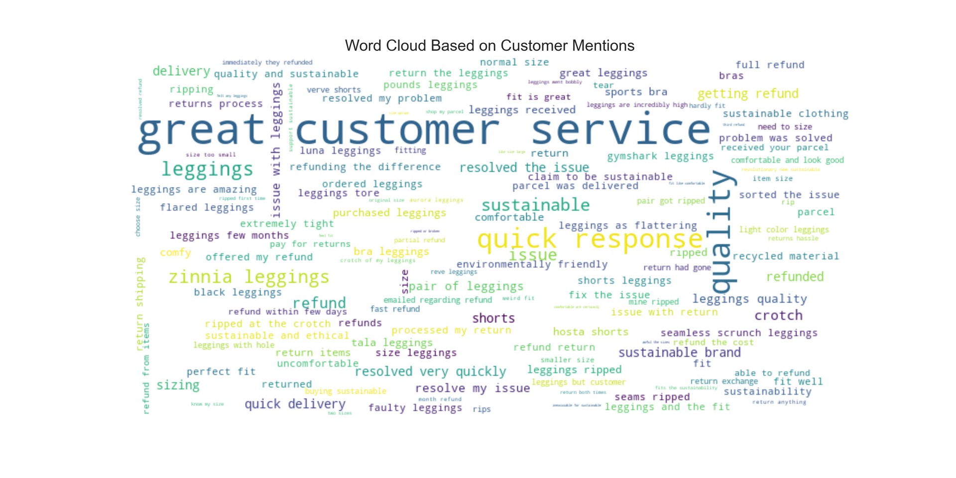 Mentions of leggings, shorts and bras indicate a strong focus on product-related feedback.