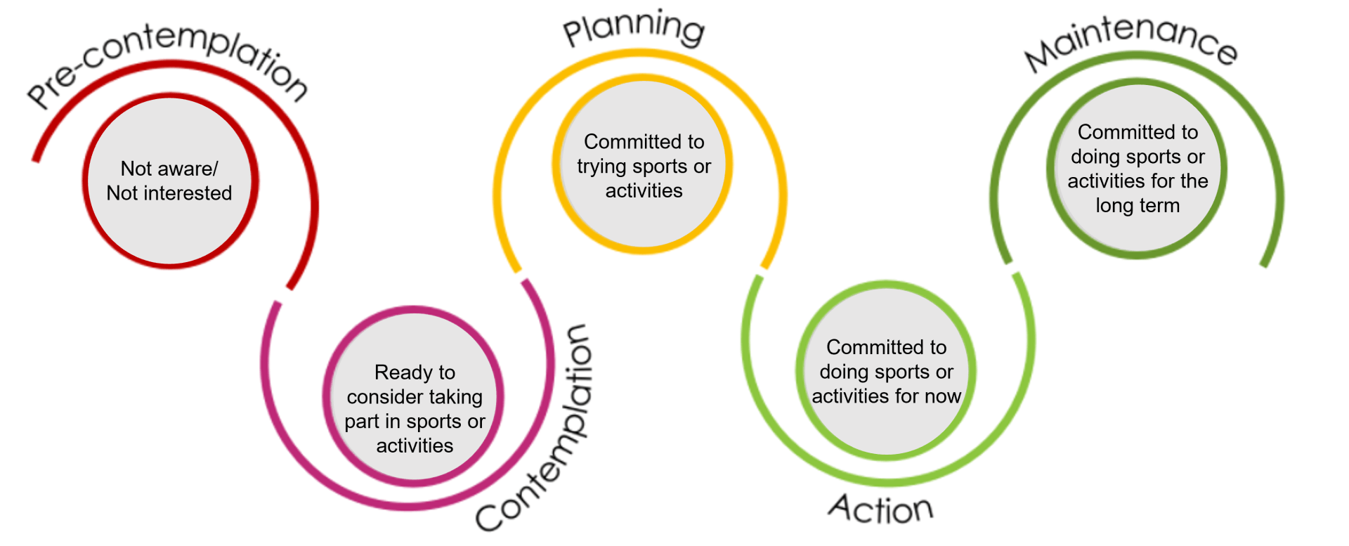 In relation to the BCM, the Olympic Games have more of an impact on those already engaged with sports (Planning, Action and Maintenance stages) rather than at the more attitudinal Pre-Contemplation and Contemplation stages.